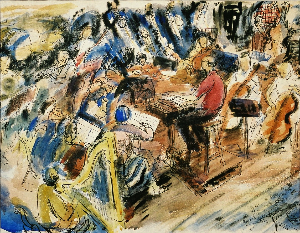 Mary (1904-1992) sketched and painted Rehearsal Orchestra in Edinburgh for many years and also brought along some of her wonderful puppets for memorable performances of Prokofiev’s Peter and the Wolf and Poulenc’s L’Histoire de Babar with the orchestra and narrators.