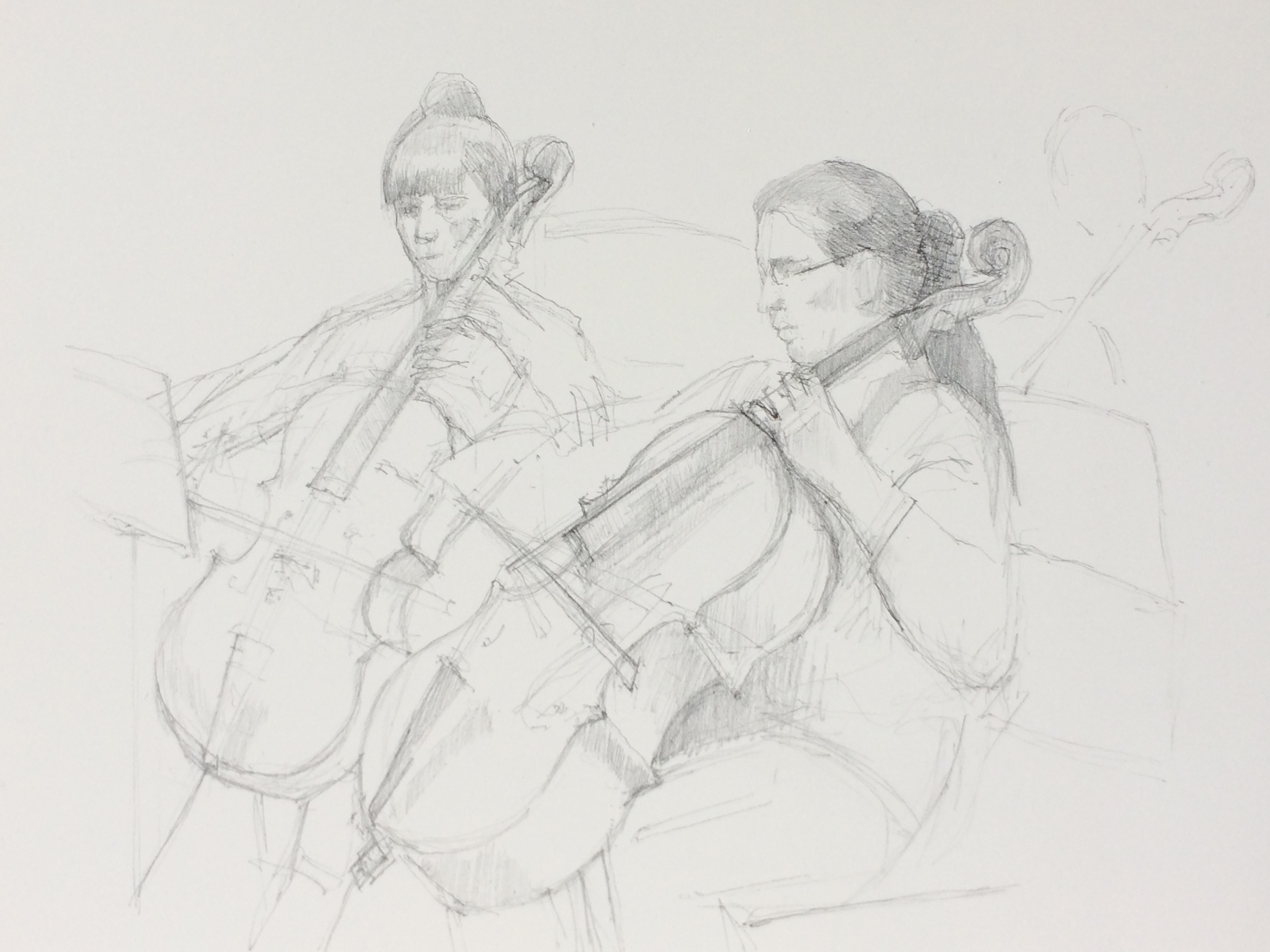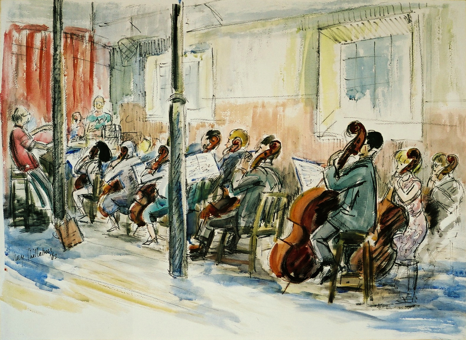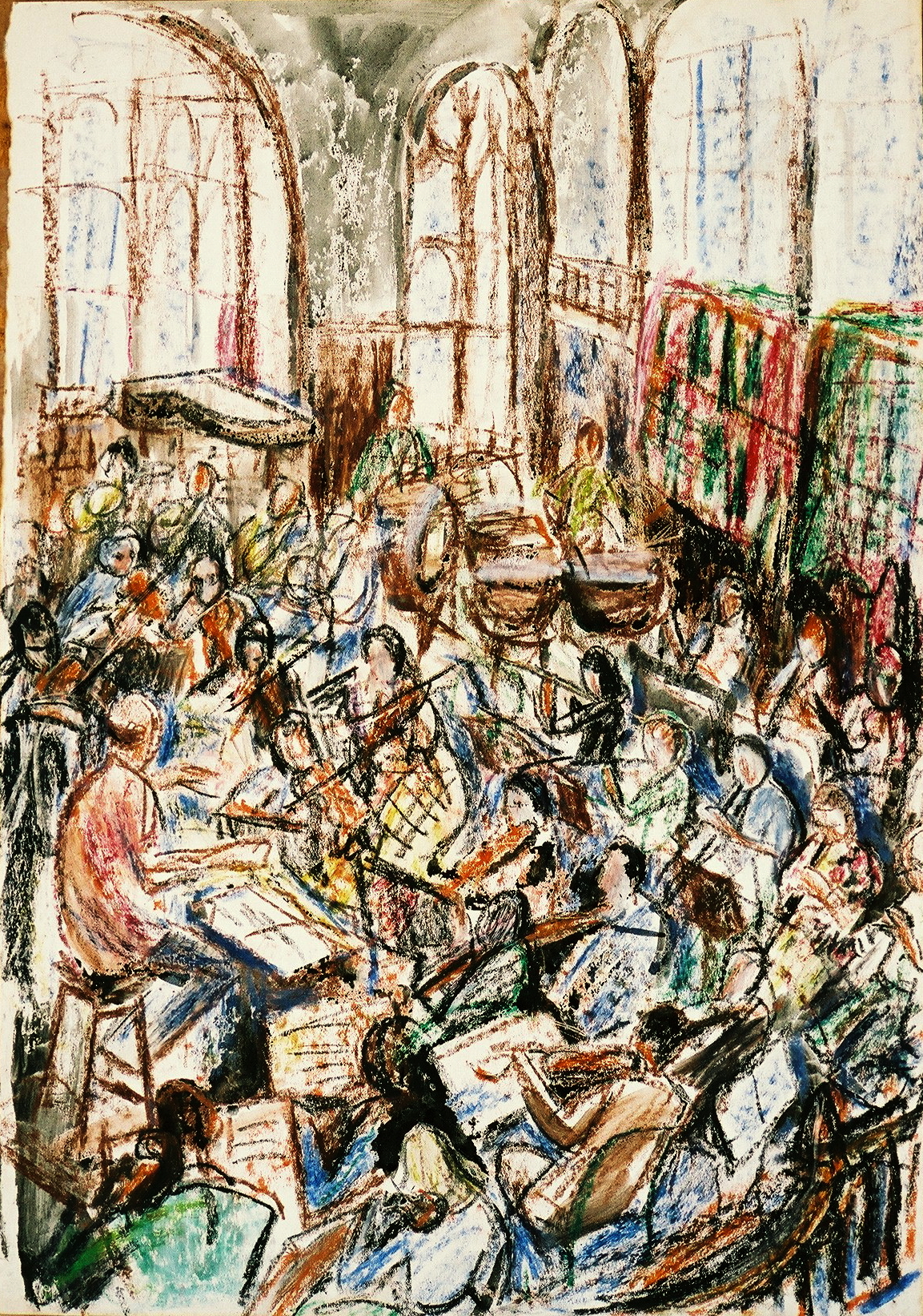 Talented artists have been painting and drawing Rehearsal Orchestra from the very earliest days. Work is for sale to help support the orchestra's activity. You can also purchase postcards of the artwork on course days.