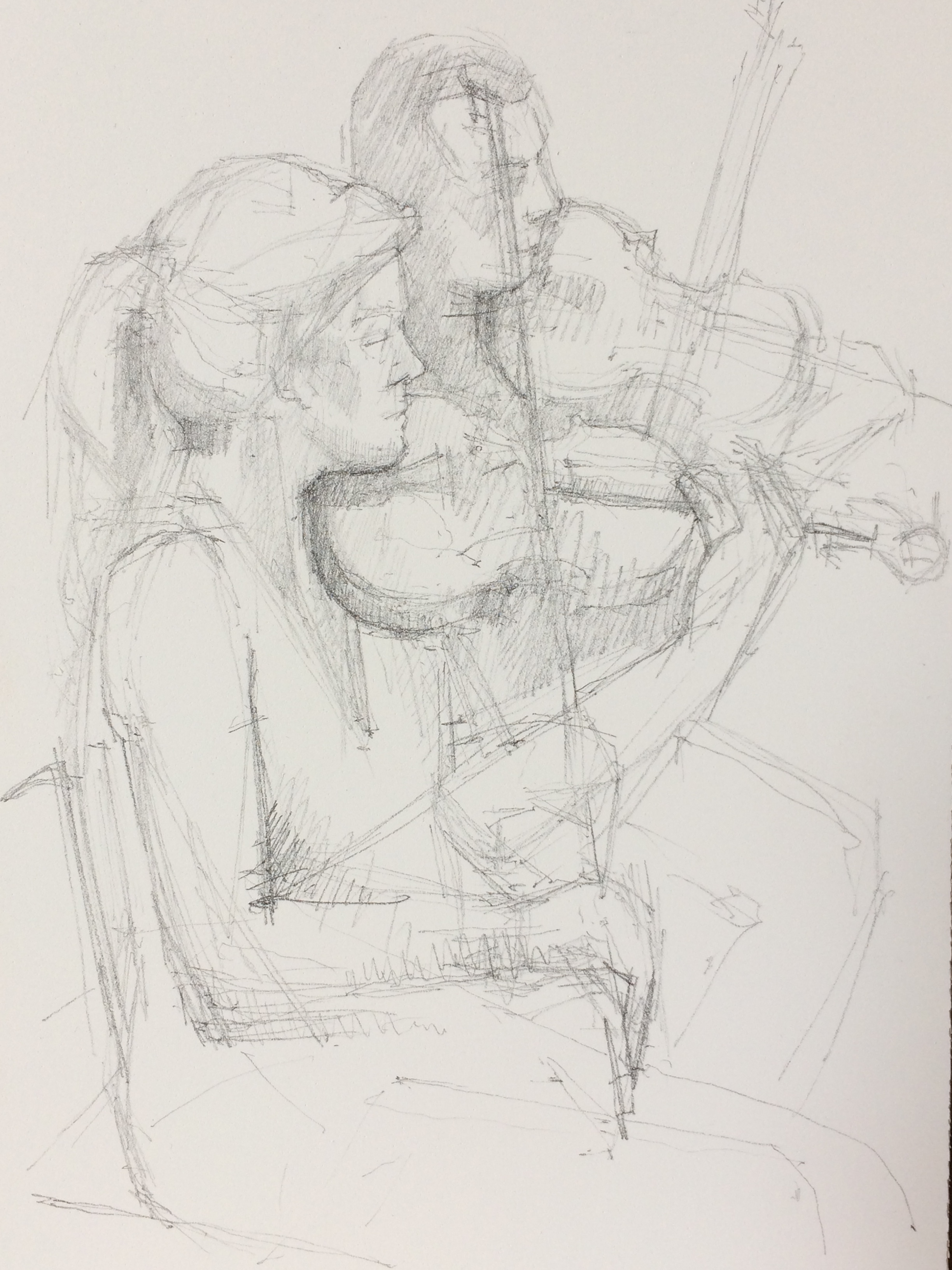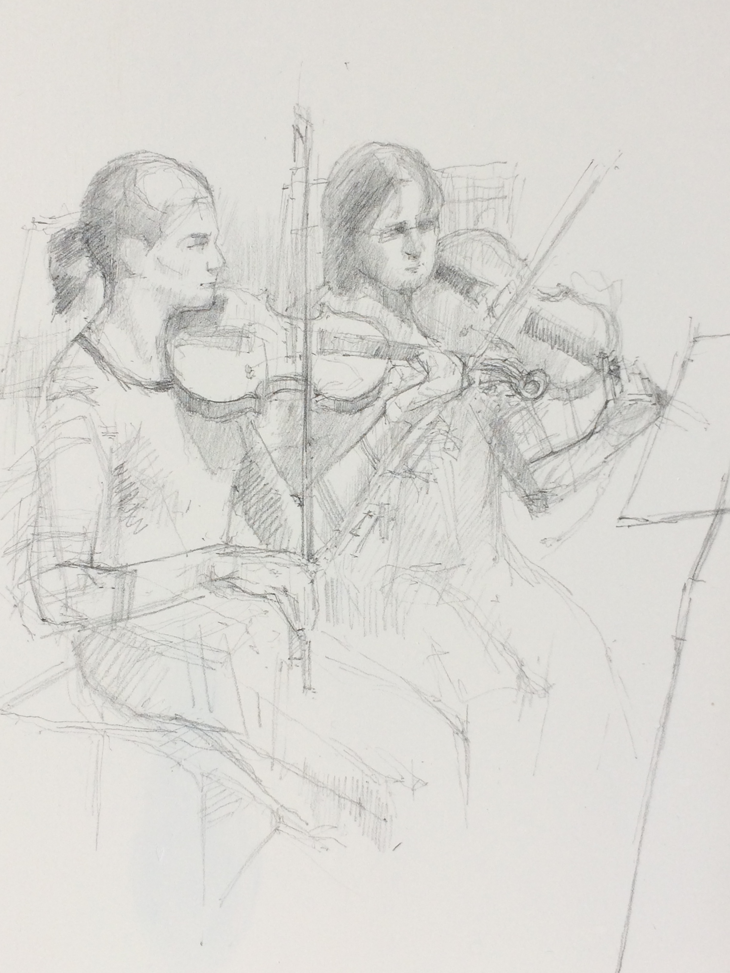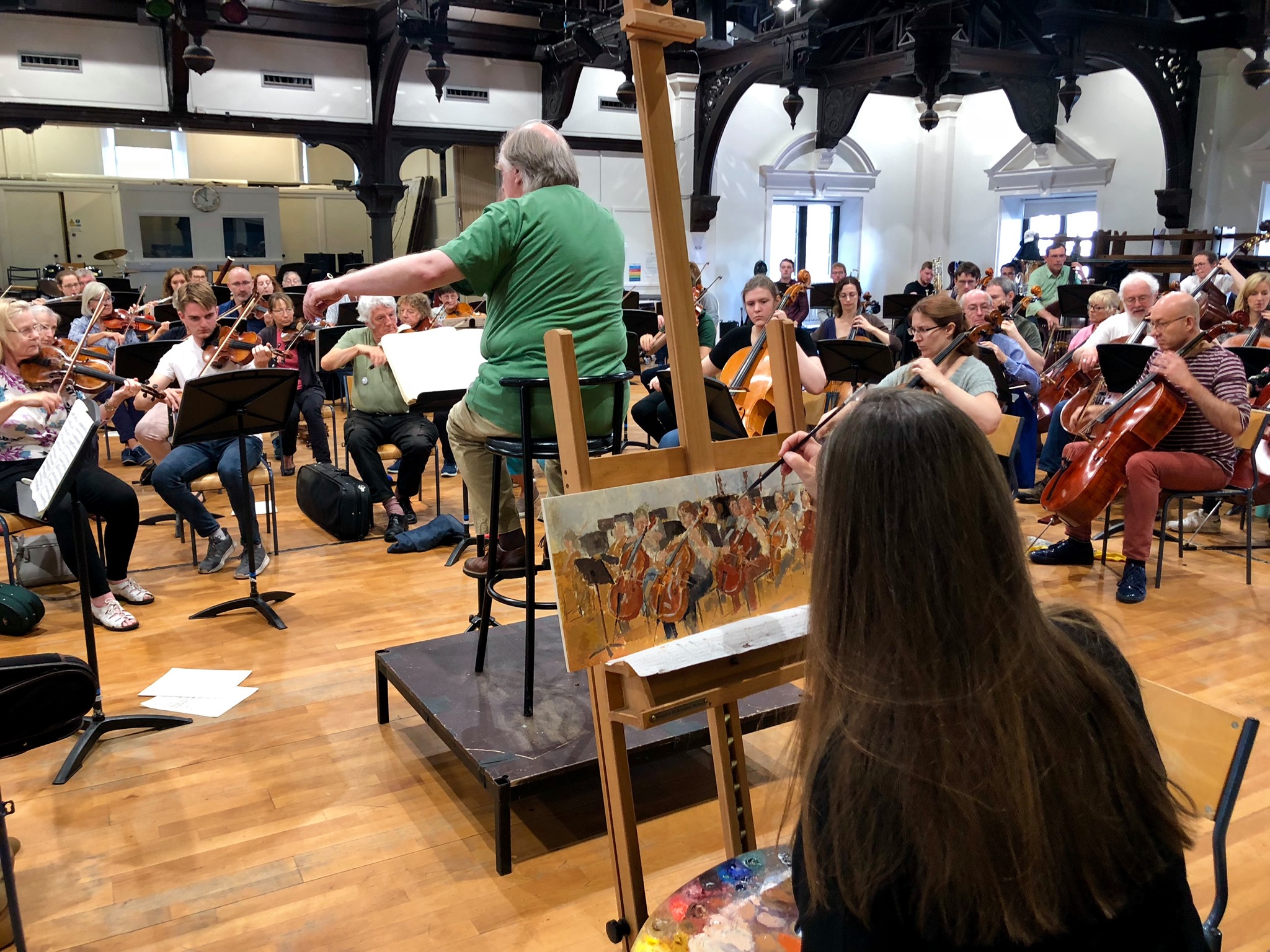 Adele Wagstaff is an artist and teacher who has been sketching and painting Rehearsal Orchestra in London and Edinburgh for a number of years and whose artwork of RO is for sale to benefit the orchestra.