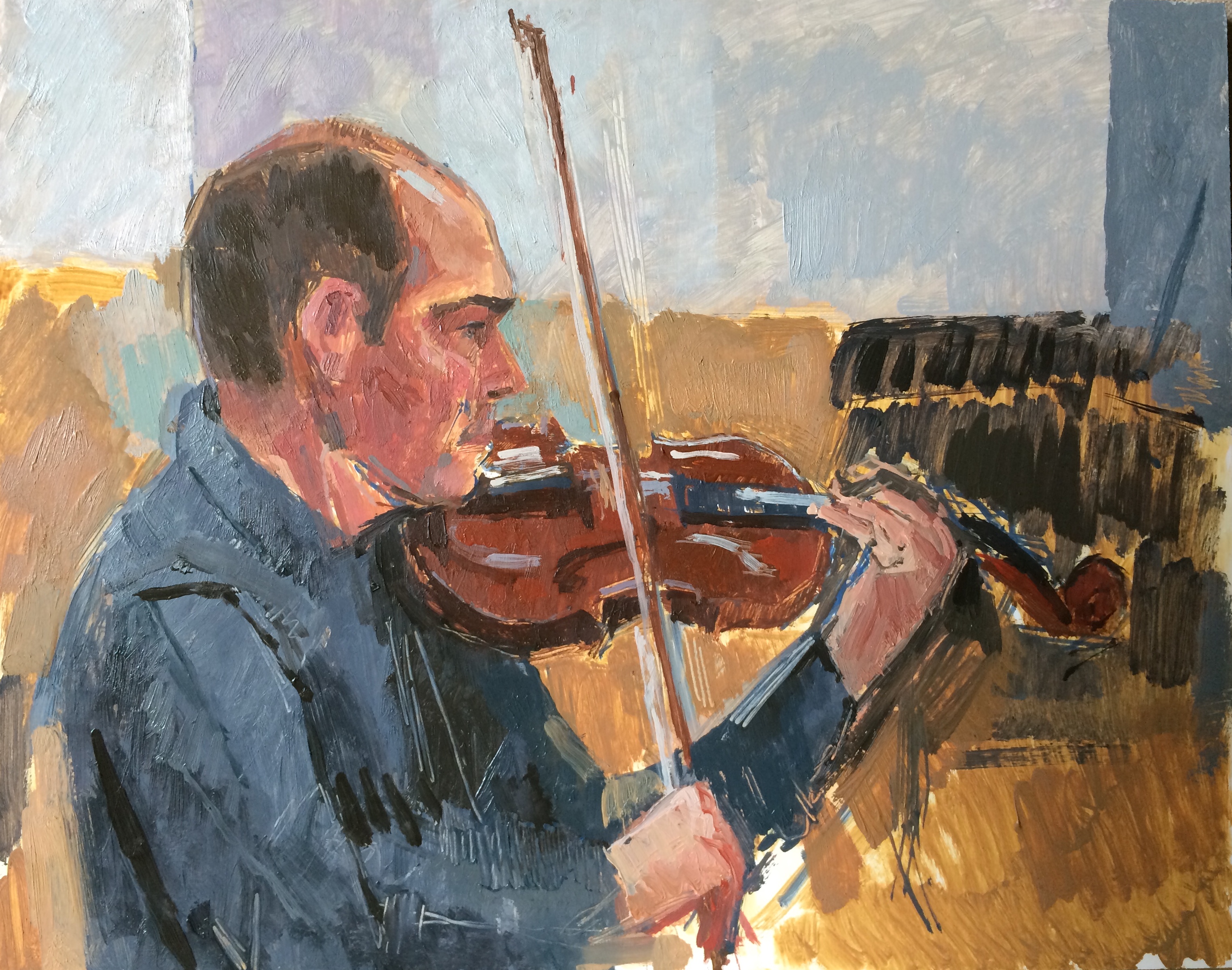 Shostakovich - Martinů Rehearsal Triptych, Edinburgh 2012 (detail). Oil on gesso panels. By Adele Wagstaff.