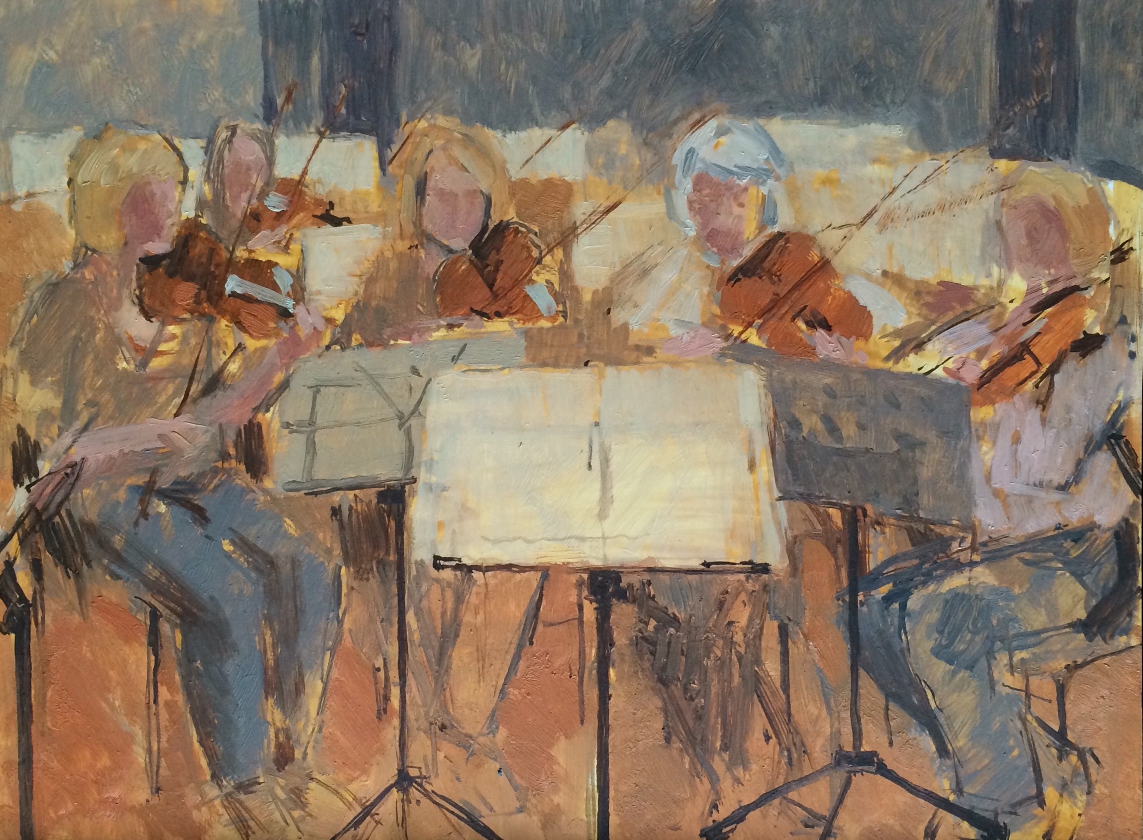 Adele’s work featuring Rehearsal Orchestra was exhibited at St John’s Church, Waterloo, in 2014, at Putney School of Art during our 60th anniversary year in May 2017 and in the grade II* listed Chapel at Brompton Cemetery in June 2023.